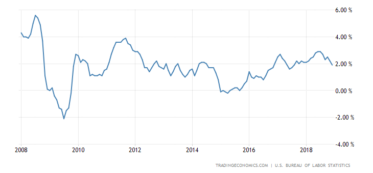 Annual inflation rate in the US fell to 2.7 percent in August of 2018 from 2.9 percent in July and below market expectations of 2.8 percent. It is the lowest reading in four months amid a slowdown in cost of fuel, gasoline and shelter. Inflation Rate in the United States averaged 3.27 percent from 1914 until 2018, reaching an all time high of 23.70 percent in June of 1920 and a record low of -15.80 percent in June of 1921.