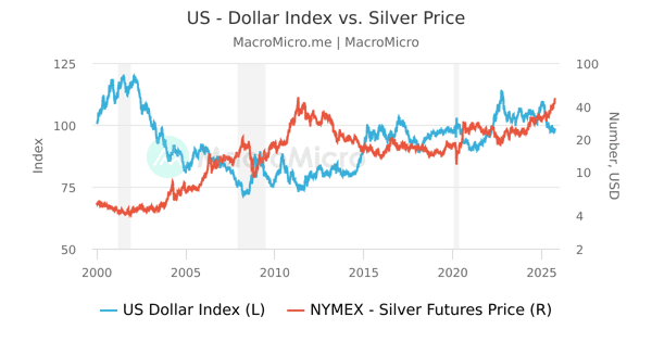 3. The US, being that it’s so economically dominant, has a lot of leverage in so far as negotiating its debt owned by its weaker creditors, such as Japan and China. This is the opposite of how debt usually works for individuals or nations historically, in which the creditor has power to inflict various punishments such as repossession. Or the debtor’s currency is devalued, like Germany during the ’20s. Yet the US dollar index has held up well over the past 20 years: